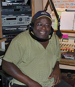Firefly, also known as Tony Alabi, came to the US from Nigeria where his parents were from ethnic groups with significantly different cultures. His father is Yoruba and his mother Ibo. He spent much of his childhood in the predominantly Muslim Northern Nigeria, where his parents lived and worked, and vacationed with his maternal grandfather, a tribal Chief in the Christian/Animist Eastern Nigeria. As a teenager, Firefly attended school in Christian/Muslim Yorubaland in Western Nigeria. Perhaps this diverse background predestined Firefly to create the bridge between KBOO listeners and the wealth of African musical styles.