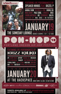 POH HOP is even bigger this year, stepping it’s game up with performances from Errbody in the game in the Northwest.   Backspace, and Someday Lounge is proving GodLike Status by housing the whole festival, all weekend long.   Peep games kiddos!  That means: Someday- 21 and up,  Backspace- all ages baby!!!   Click venues to get set lists, and prices.