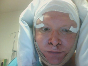 But let me set the stage. This blog follows on the one previous,in which I, Theresa, the big mouth behind Press**Watch, go to Argentina to get some basic facial feminization, that will (I hope) allow me to go about my daily duties with less abuse and/or notice from queerbashing types. I paid up front for the surgery with my savings, held back enough from several paychecks so that I could get here and hang out in a bed-and-breakfast, and here I am, recovering from the surgery.