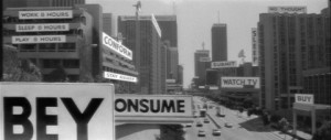 <p style="margin-left: 40px;">John Carpenter could have, and did. Almost a quarter of a century ago (1988), the master of date-night terror (<em>Halloween</em>, <em>The Thing</em>), wrote and directed <a href="http://en.wikipedia.org/wiki/They_Live"><em>They Live</em></a>, depicting the Age of Reagan as a catastrophic alien invasion. In one of the film’s brilliant early scenes, a huge third-world shantytown is reflected across the Hollywood Freeway in the sinister mirror-glass of Bunker Hill’s corporate skyscrapers.</p>
